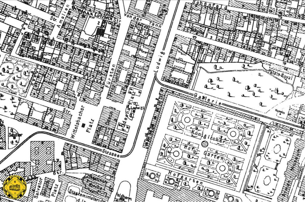 Der Ideenreichtum dieser Zeit war schier grenzenlos: wenn eine elektrische Oberleitungstrambahn am Odeonsplatz nicht gewünscht wird, dann fährt man eben drumherum. Da gerade sowieso über die Gleislage in der Ludwigstraße gesprochen wurde, – der Trend ging ab 1899 zur Seitenlage der Schienen wie schon in der Maximilianstraße im gleichen Jahr, könnte man im gleichen Zug auch den Odeonsplatz über die von-der-Tann-Straße und Fürstenstraße umfahren.