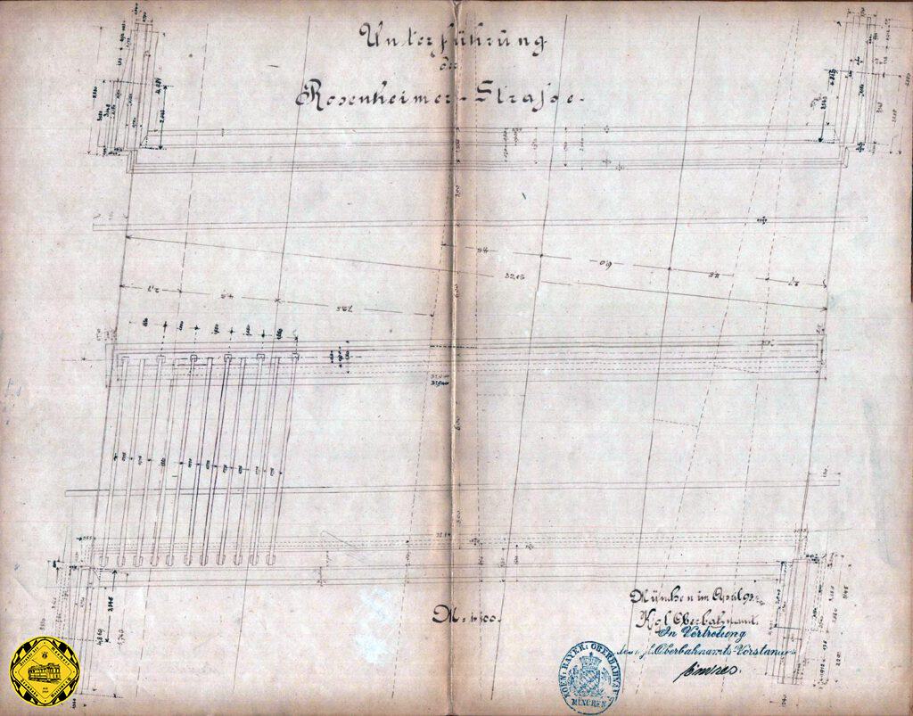 Eine Unterführung an der Rosenheimerstraße wird am 29.Juli 1893 mit grob 38.330 Mark kalkuliert und erste Entwürfe werden vom Bauamt gezeichnet und der Staatsbahn abgesegnet.