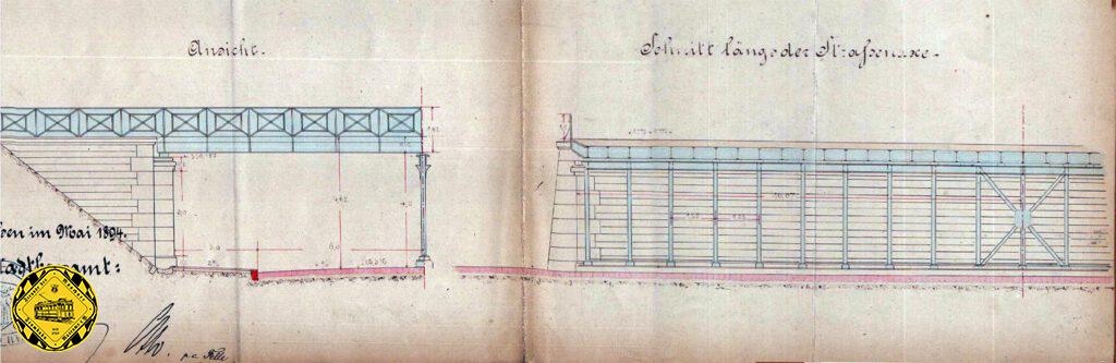 Diesem Plan von 24.Juli 1893 sind heftige Diskussionen zwischen Magistrat und Staatsbahn vorausgegangen, die gut dokumentiert vorhanden sind und von denen wir hier berichten.