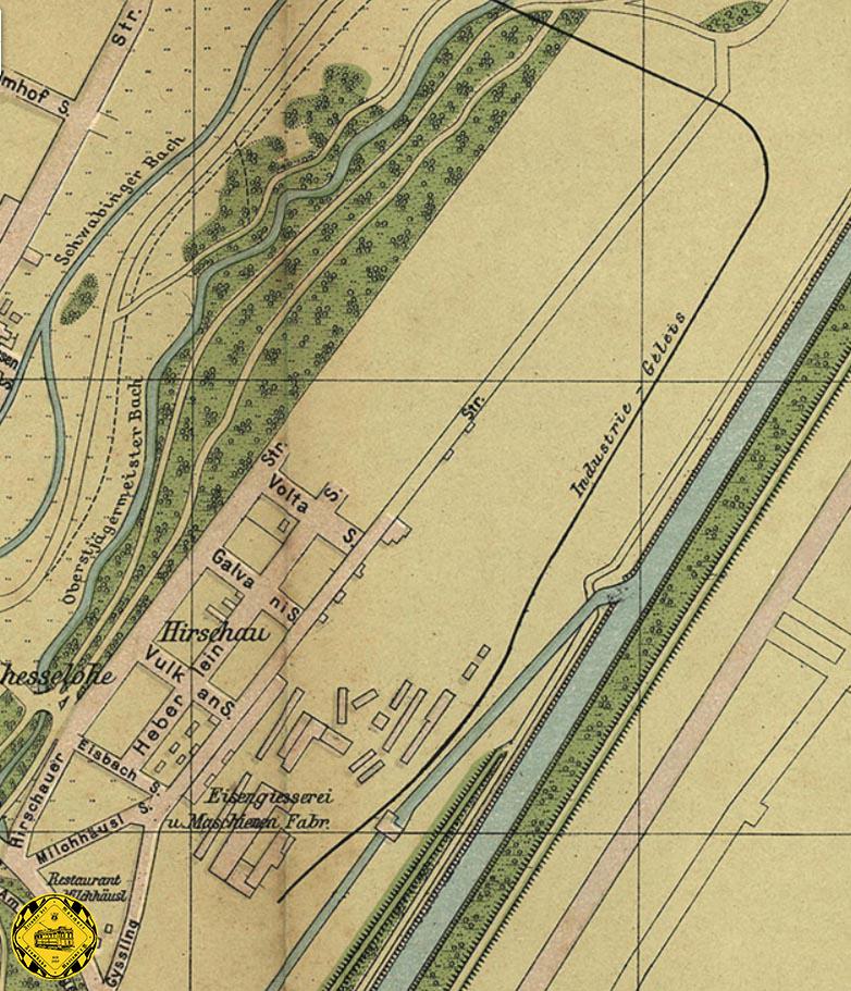 Am 9.März 1902 berichten die „Münchner Neuesten Nachrichten“ von dieser neuen Güterbahn von Moosach bis zur Hirschau: Herr Maffei bekommt einen eigenen Schienenanschluss für seine Lokomotiv-Ablieferungen.