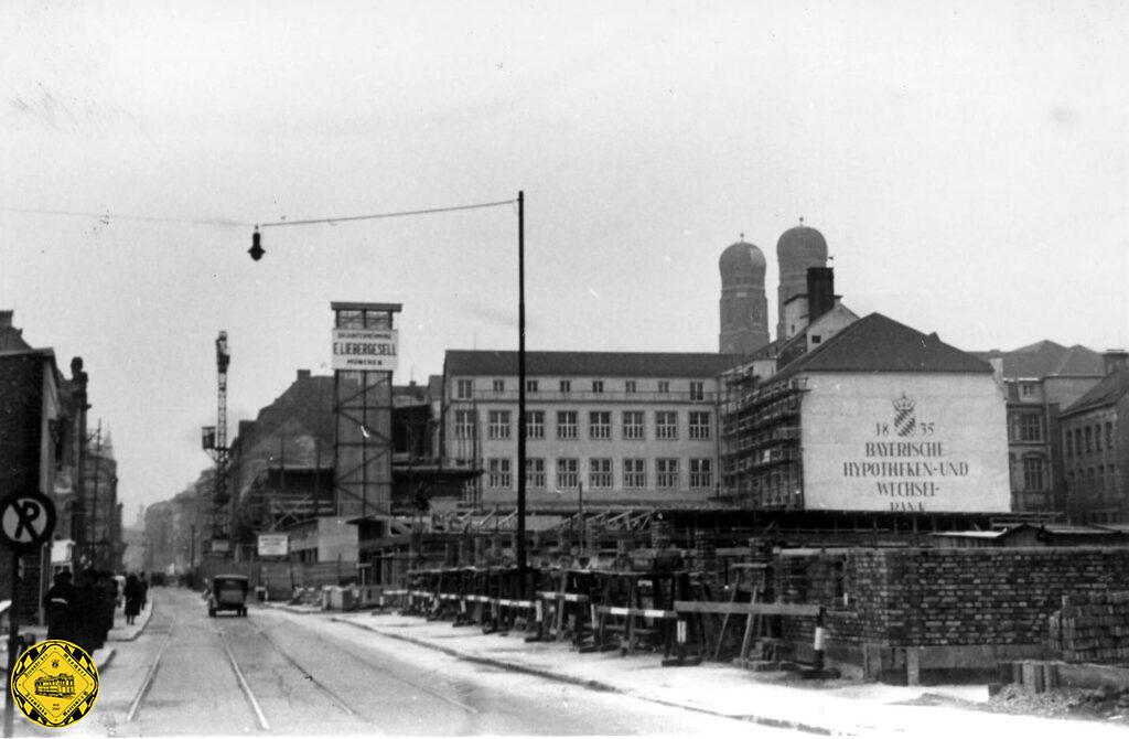 Ab 5.11.1944 war die Trambahnstrecke Strecke durch die Theatinerstraße ab Odeonsplatz über die Maffeistraße und weiter durch die Weinstraße zum Marienplatz Kriegseinwirkung nicht mehr befahrbar und wurde nach dem Krieg nicht wieder aufgebaut. Die Bilder sind aus den Jahren 1947 und 1948.