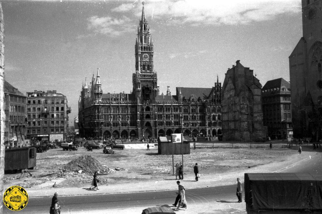 Im Februar 1947 ist die Strecke über den Marienplatz und durch das Alte Rathaus soweit wieder möglich