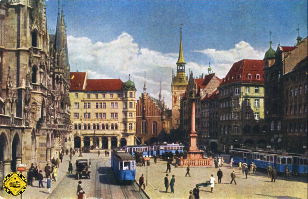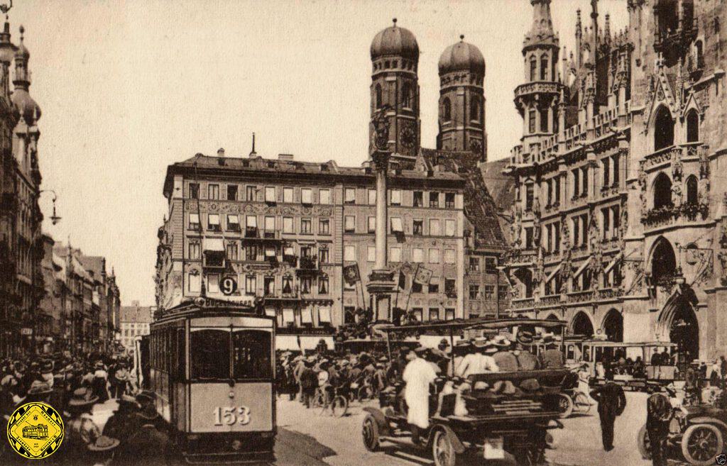 A-Wagen-Paradies zu dieser Zeit auf dem Marienplatz. 1910 fährt auf der Linie 9 der A2-Tw 153 am Marienplatz Richtung Bogenhausen.
