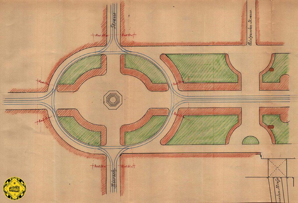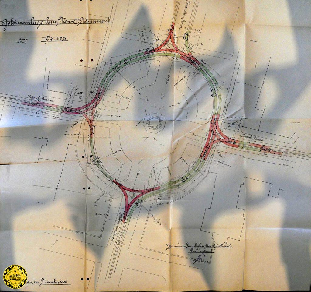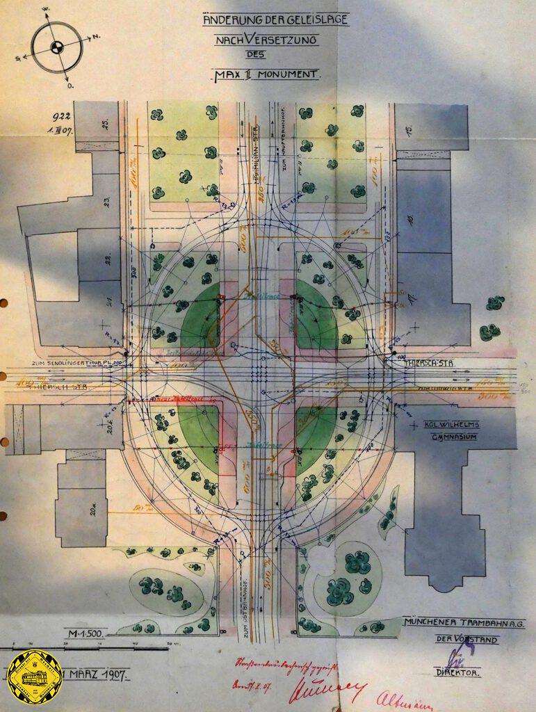 Im März 1907 entstand dieser Gleisplan, der eine komplette Erschließung des Platzes, an dem vormals das Maxmonument stand, zeigt.