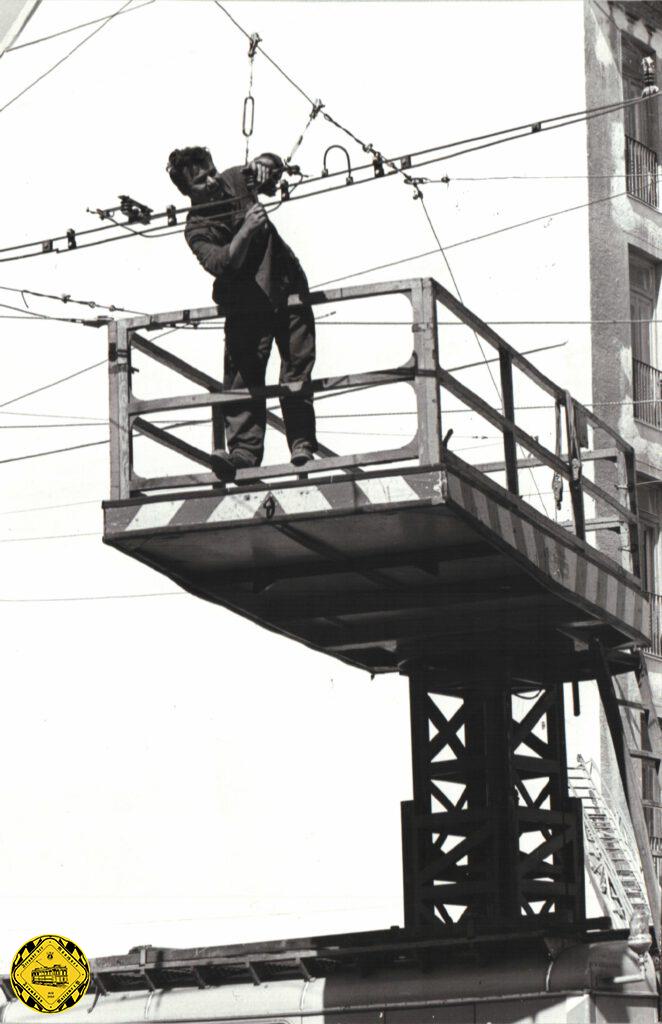 Die Stromabnahme der Triebfahrzeuge geschah zu dieser Zeit durch Stangenstromabnehmern mit Rollen. An Weichen zog der Triebwagen die Stangerln seitwärts ,so dass sie automatisch in die neue Fahrtrichtung gezogen wurden. Dieses Prinzip funktionierte oft, aber nicht immer, wie der ganze Stangerlbetrieb überhaupt. Oft musste dann der Schaffner das Stangerl wieder einsetzen, denn der Fahrer durfte aus Sicherheitsgründen seinen Fahrerstand nicht verlassen. Nachts und bei Regen war das bestimmt nicht immer ein Spaß.