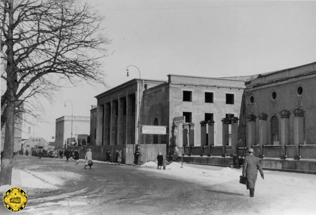 Im 2.Weltkrieg wird der Ostbahnhof 1944 als strategisches Ziel schwer zerstört, die Seitenflügel bleiben Ruinen und der Mittelbau wird notdürftig mit Betonstützen stabilisiert und wird noch bis Anfang der Achzigerjahre so betrieben.