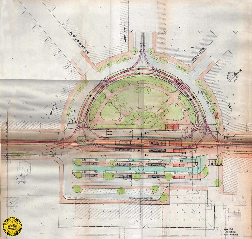 Auch der Orleansplatz wird verändert und für die Olympischen Spiele fit gemacht: dafür wird im Frühjahr 1972 die neue Schleife am Orleansplatz nach einen großen Umbau in Betrieb genommen. Der Brunnen vor dem Ostbahnhof wurde entfernt und auf den Weissenburger Platz umgezogen, der soeben wieder trambahnfrei wurde nach Beendigung der Umleitungsstrecke wegen des U-Bahn-Baus.
