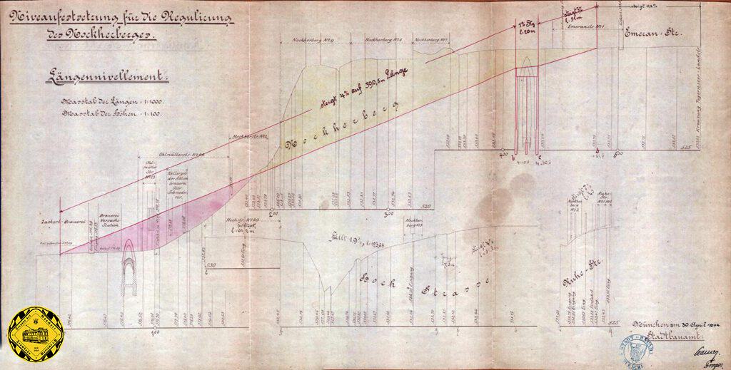 Die Regulierung des Nockherberg wurde von dem Magistrat der Stadt durch das Straßenbauamt umgesetzt in enger Absprache mit der MTAG, um die für Trambahn bewältigbare Steigung einzuhalten. Erste Erfahrungen hatte man schon vom Giesinger Berg unweit von hier und dem Maximilianeum.