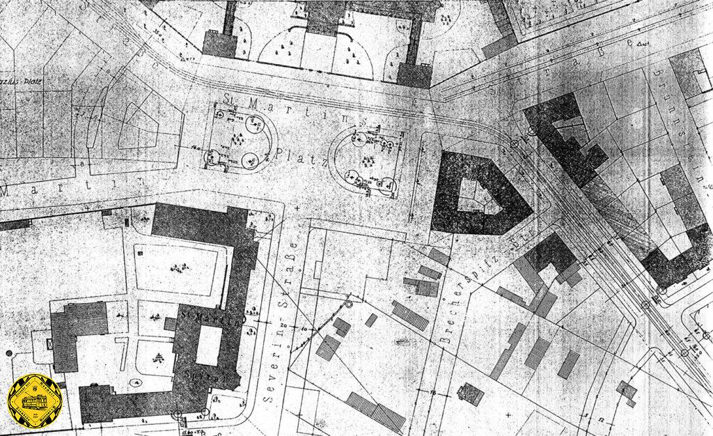 Nach der Bauzeit vom Bauzeit 2. Juli bis 17.Juli 1926 geht die erste Schleife am St.-Martins-Platz am 25.7.1926 in Betrieb. Grund für diese Schleife war der zunehmende Automobilverkehr, der den Betrieb auf der alten Kreuzungsschleife am Ostfriedhof sehr erschwerte. Hier konnten nun die Triebwagen mit Beiwagen einfacher wenden. Die Schleife hatte eine Ausfahrt nach Westen und Osten.