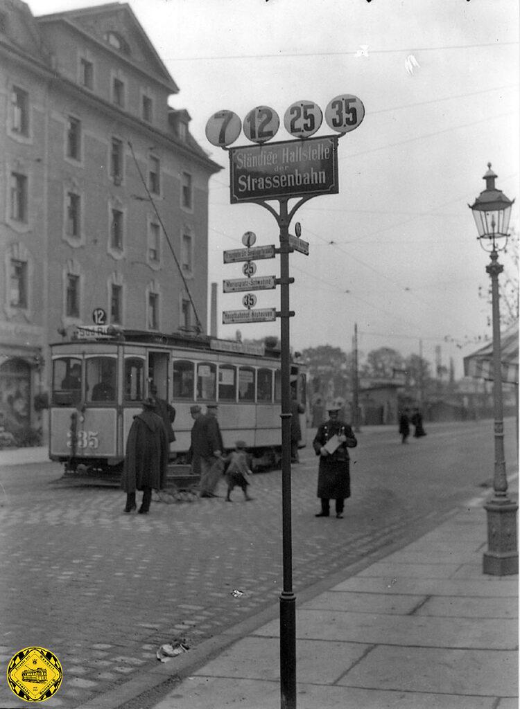 Ab dem 28.9.1901 beginnt der Trambahnbetrieb auf der Strecke Tegernseer Landstraße ab St. Bonifatius Straße (Ostfriedhof) und Regerstraße und weiter über die Franziskanerstraße bis zum Rosenheimer Platz.