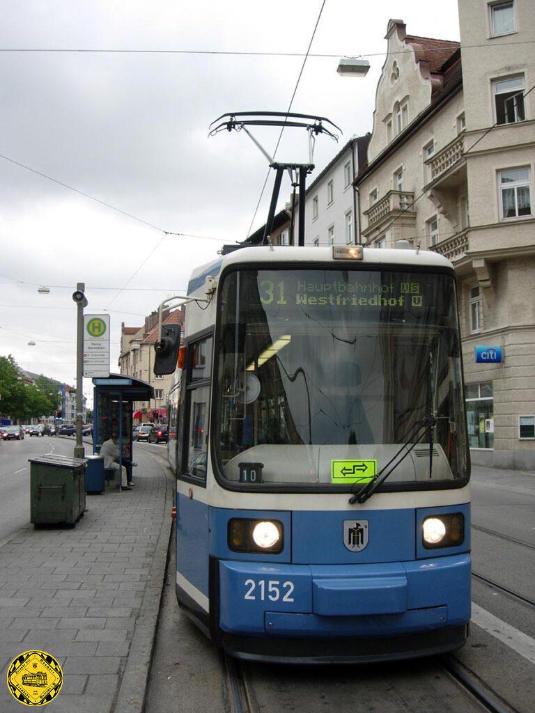 Um die Linie 31 am Pasinger Marienplatz in den 7 Betriebstagen hier zu erwischen, hat unser Chef selber zum Fotoapparat gegriffen: Linie 31 mit Tw 2152 in Pasing am 29.8.2005