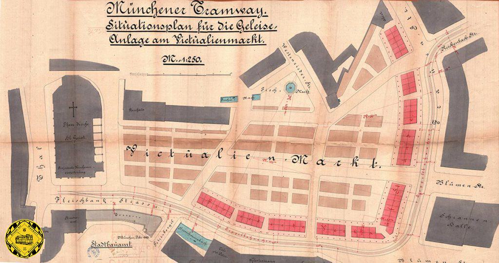 Die Planung, die Pferdebahn außen herum zu führen, wurde verworfen. Erst als 1891 der Fischerturm abgerissen wurde, wurden auch die Stände auf dem Viktualienmarkt anders verkehrsgerechter angeordnet und die Trambahn konnte zeitweise bis zum Marienplatz durchfahren.