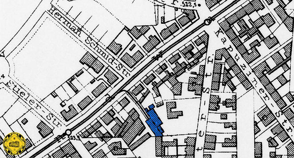 Der Betriebshof stand auf dem Gelände der Liebherrstraße (Gleise) und der heutigen Berufs- und Meisterschule, die 1928 als Kerschensteiner Berufsschule gebaut wurde. Der Blick in den Bildern rechts und links geht Richtung Süden.