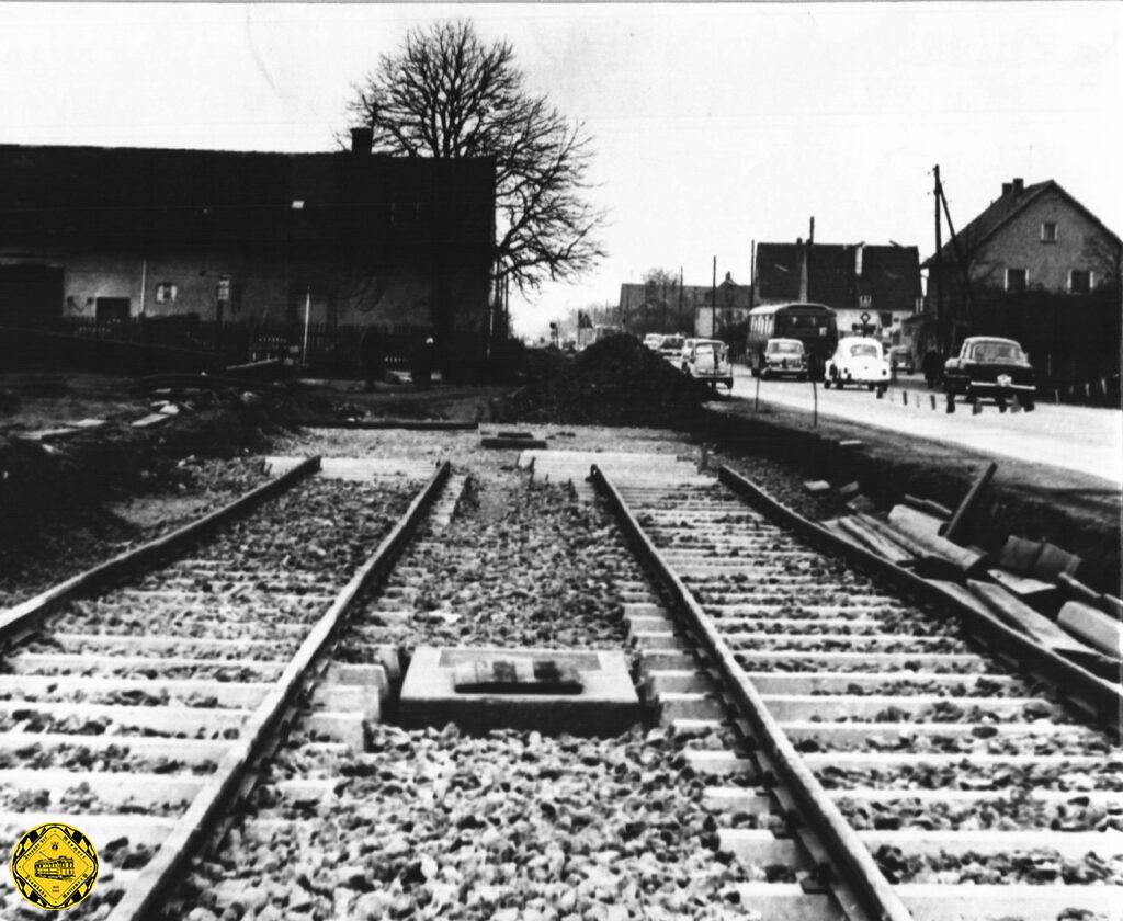 Noch eine Streckenerweiterung wird gebaut: am 6.November 1962 geht die neue Schleife an der Amalienburgstraße in Betrieb. Im Sommer 1962 werden hier die Gleise der Ausweiche gelegt.
