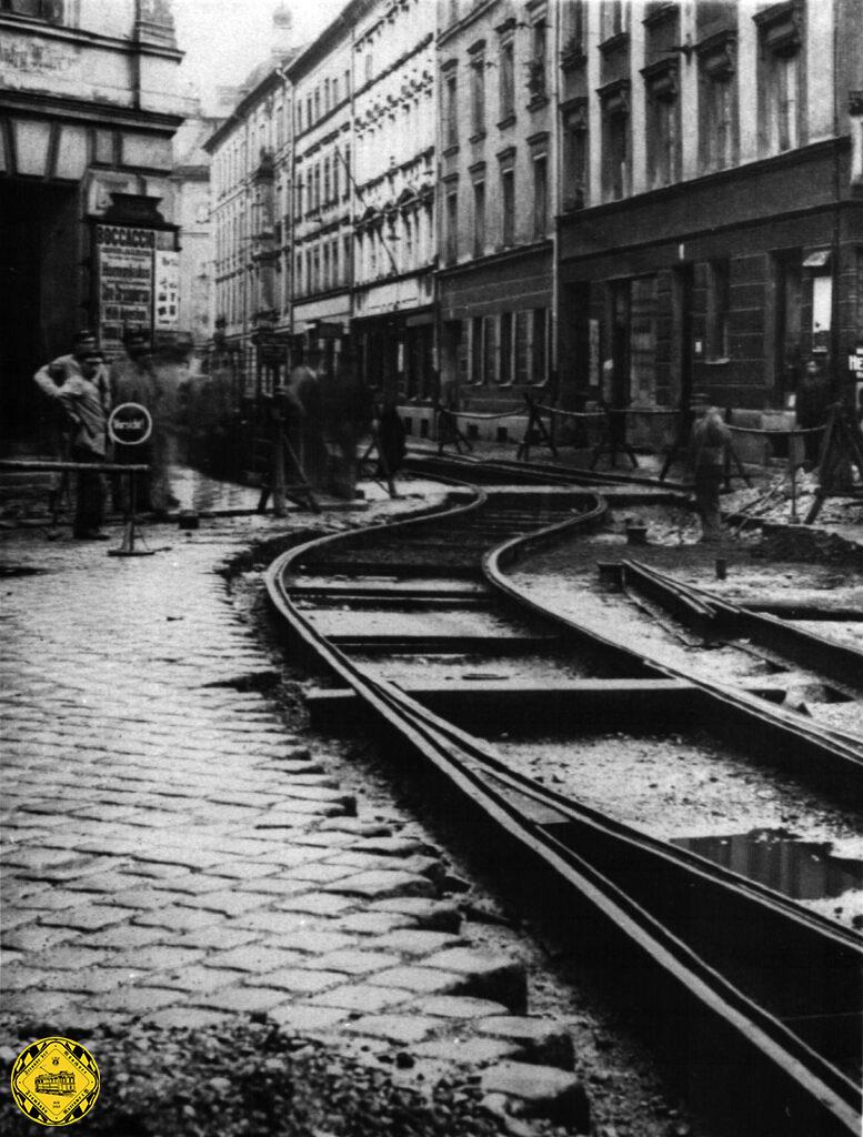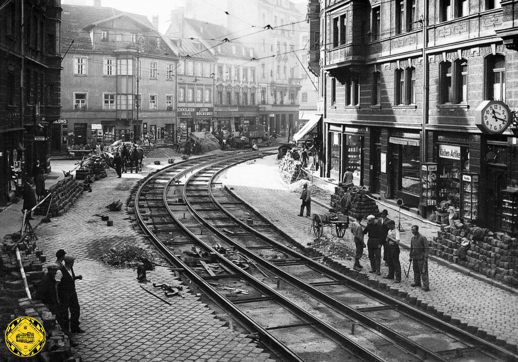12.Oktober 1933 wird eine Gleiserneuerung an der Inneren Wienerstraße nahe dem Max-Weber-Platz durchgeführt.