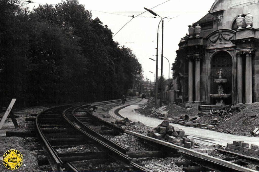 Im Jahr 1968 wurde der Max-Weber-Platz runderneuert: Gleisbau & Oberleitungsbau waren gleichzeitig aktiv, der Trambahnverkehr lief weiter und die Fußgänger hatten in gewisser Weise bei mehreren Bauabschnitten etwas das Nachsehen.