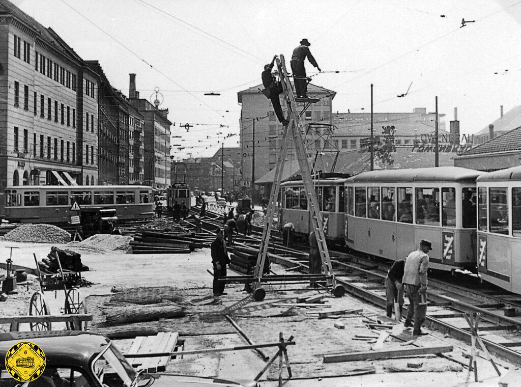 Gestern wie heute sind Arbeiten an Schienennetz der Münchner Tram sehr umfangreich, schwierig und brauchen viel Planung und Zeit zur Umsetzung. Dabei geht es nicht nur um die Erweiterung des Schienennetzes, sondern auch darum, abgenutzte Gleise auf den Streckenabschnitten auszutauschen. Der Gleisbau ist die elementare Voraussetzung für schienengebundenen Trambahnverkehr. Auch wenn es uns heute so scheint, dass es eigentlich nur noch Gleisbaustellen in München gibt, – das ist nichts Neues und war schon immer so. Egal ob es jetzt Veränderungen, Erneuerungen oder Erweiterungen sind, München ist durch ihr weit verzweigtes Liniennetz immer die Hauptstadt der Gleisbaustellen.