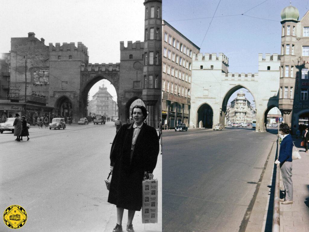 Im Zweiten Weltkrieg schwer beschädigt, wurde das Karlstor etwas vereinfacht wieder aufgebaut.