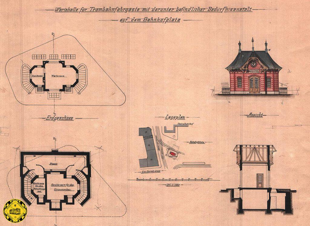 Allerdings fand dieses Wartehäuschen schon 1877 schon Eingang in den Polizeibericht: dieses Wartehalle mache einen zu großen Schatten auf dem Bahnhofsplatz. Untermauert wurde das mit einem Plan, der den Schattenwurf berechnete.