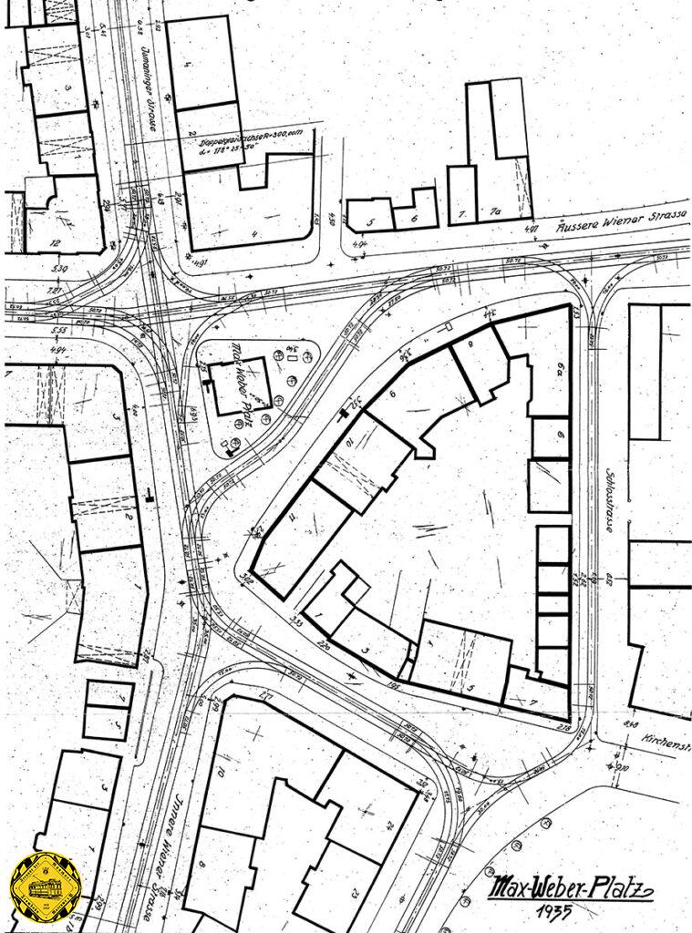 Im Jahr 1935 war der Max-Weber-Platz einer der verkehrsreichsten Trambahnknotenpunkte im Osten der Stadt.