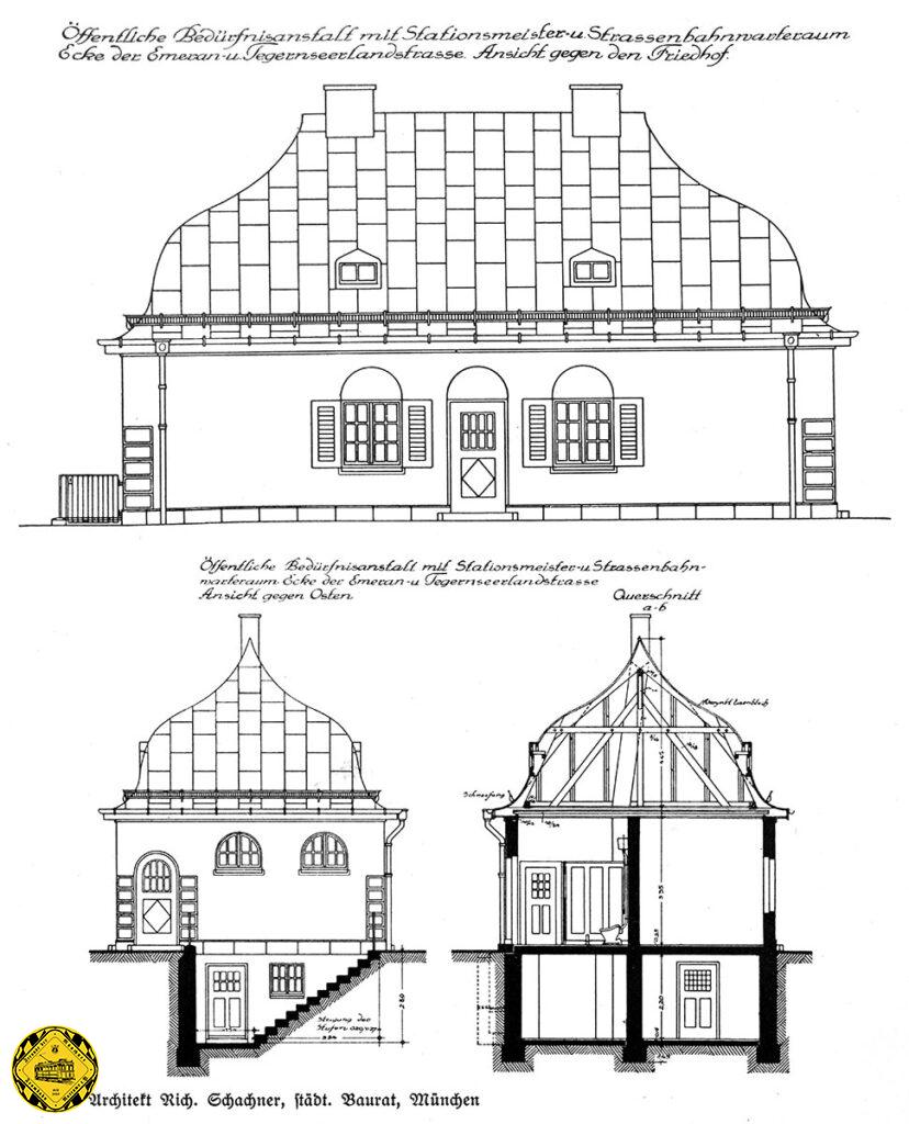 Das erstes Stationshaus vom Ostfriedhof wird 1897 praktisch gebraucht übernommen vom Sendlinger-Tor-Platz und zur Ruhestraße verlegt. 1910 wird es abgebrochen und ein zweites Stationshaus wird 1910 an der Tegernseer Landstraße 9 erbaut 1910.