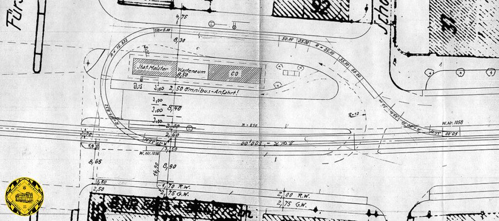 Waldfriedhofstraße 200: Stationshaus mit Läden und Bedürfnisanstalt und einer neuen Funk-Sendestation für den neuen Funkbetrieb ab den 60er-Jahren.