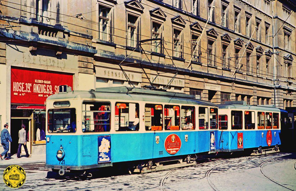 Der 721 noch im Linienbetrieb auf freier Wildbahn in der Prielmayerstrasse und nun steht er fahrbereit im MVG-Museum