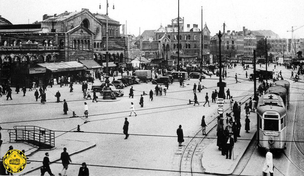 Der Hauptbahnhof großenteils zerstört, überall noch Schuttbahnen:  Der K-Wagen Nummer 700 hält den Trambahnbetrieb in München nach dem Krieg aufrecht.