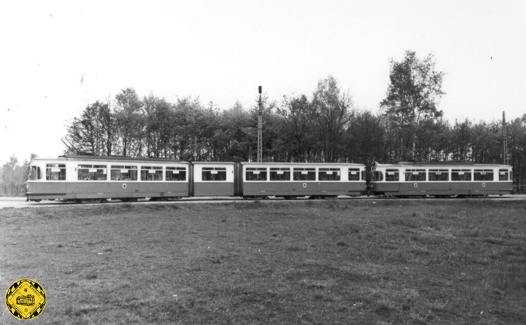 Auch wenn die beiden Wagen im Fahrgastdienst nur einzeln eingesetzt wurden, gab es durchaus auch Versuche für den Einsatz als Doppeltraktion oder wie hier mit einem M3-Triebwagen in der Schleife an der Großhesselohe