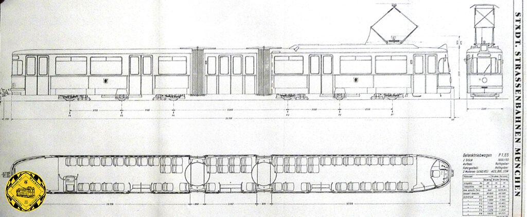 Für die geplante Unterpflasterstraßenbahn und zur Reduzierung des Schaffnereinsatzes wurden 1960 zwei Gelenktriebwagen bstehend aus einem M-Triebwagen und Beiwagen mit eingehängten schwebenden Mittelteil, wie sie schon bei anderen deutschen Betrieben allerdings als Drehgestellwagen im Einsatz waren. Es waren die ersten M-Wagen mit glatten Seitenwänden und Schwenktüren, beim Beiwagen sogar schon die Ausstiegstüre vor der Lenkachse, wie bei den folgenden M 5. Die Wagen wurden wegen ihres völlig anderen Fahrgastflusses jedoch von den Fahrgästen nicht angenommen und daher nicht weiter beschafft. Sie mussten sogar mit roten Liniennummern fahren, damit die Fahrgäste schon von weitem erkennen konnten, dass sie an anderen Türen zusteigen mussten, als bei den M-Zügen. Als ab 1964 die P-Wagen beschafft wurden, mussten die zwei P 1.65 diese Baureihenbezeichnung frei machen und wurden dann in MG 1.65 (M-Gelenk) umbenannt, was allerdings nie an den Wagen angeschrieben wurde. Sogar die Einsparung von Schaffnern ließ sich im Stoßverkehr nicht umsetzen. Daher wurden die zwei P 1.65 Züge nicht für den Einmannumbau vorgesehen. Der Wagen 101 wurde daher 1972/1973 zum Personalwagen Nr 2901 und der Wagen 102 1976 nach Wehmingen verkauft.