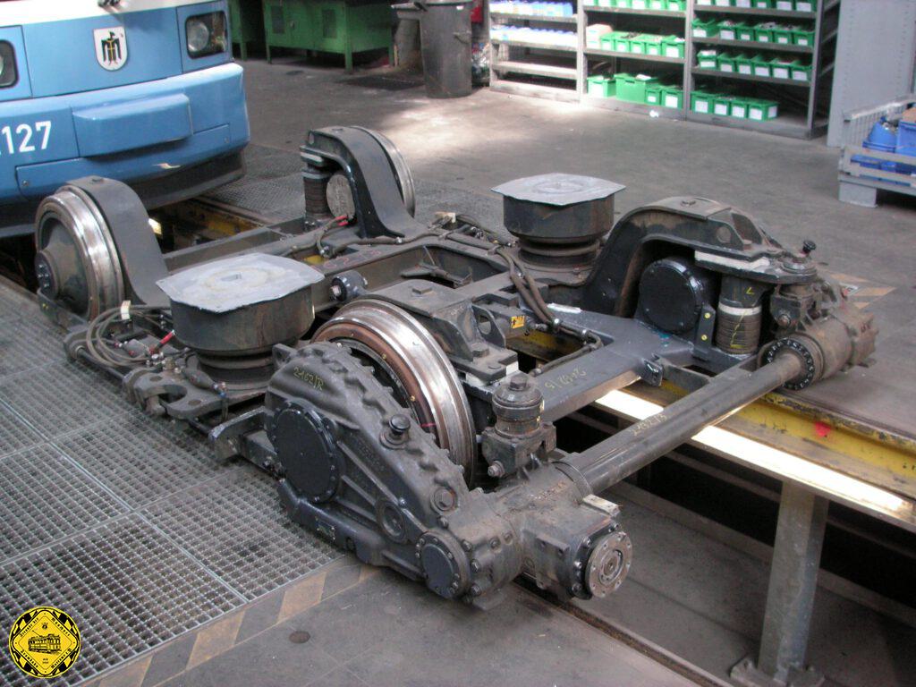 Die R-Wagen haben Fahrgestelle, die speziell für die Niederflurigkeit geeignet sind. so wird auf durchgehende Achsen verzichtet und der Antrieb erfolgt über Nabenmotoren.