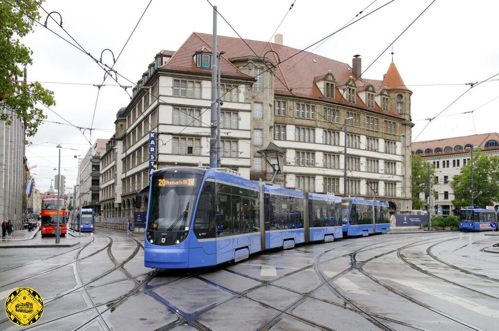 Seit der ersten Ausfahrt am 28. Juni 2022, hat T4-Wagen 2511 in den vergangenen Tagen verschiedene Probetouren im Streckennetz unternommen. Der Erstling der Großserie von insgesamt 73 Avenio-Vierteilern, steuerte vom Heimatdepot an der Einsteinstraße vorrangig das Bremsgleis in der Tram-Hauptwerkstätte in Ramersdorf an. Aber auch die 25er-Strecke nach Grünwald stand als Ziel der Bremsprobefahrten auf dem Plan, ebenso wie die ersten Meter durch die Innenstadt. Letztere Fahrt war nötig, um im Gefälle und bei der Steigung am Nockherberg die ordnungsgemäße Funktion der Bremssysteme zu erproben. Aufnahme: Frederik Buchleitner