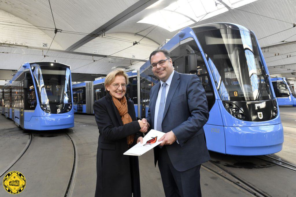 Die Regierungspräsidentin Maria Els der Regierung von Oberbayern überreichte am Nachmittag des 7.Dezember 2018 im Betriebshof 2 die Urkunden für die Inbetriebnahme an Ingo Wortmann, Geschäftsführer der MVG. Ab Montag können damit bis zu fünf der sechs Kurse der Linie 12 mit den T2-Wagen besetzt werden, die vier T4-Wagen kommen die nächsten Wochen vorrangig auf der Linie 19 zum Einsatz, bis das Fahrpersonal komplett auf den neuen Wagen geschult wurde. Für die vier noch fehlenden Zweiteiler wird in den nächsten Wochen an der Zulassung gearbeitet, ehe im Anschluss auch der Einsatz in Doppeltraktion und auch die Inbetriebnahme der Dreiteiler angestrebt wird. In den nächsten Tagen ist nun auch der Abruf weiterer Optionen aus dem im Oktober 2015 unterzeichneten Kaufvertrag zwischen den Stadtwerken und Siemens geplant. Im Laufe der nächsten Jahre sollen kontinuierlich neue Straßenbahnen geliefert werden, die einerseits dem Ausbau des Angebots, andererseits auch dem Ersatz der älteren Serien dienen soll.