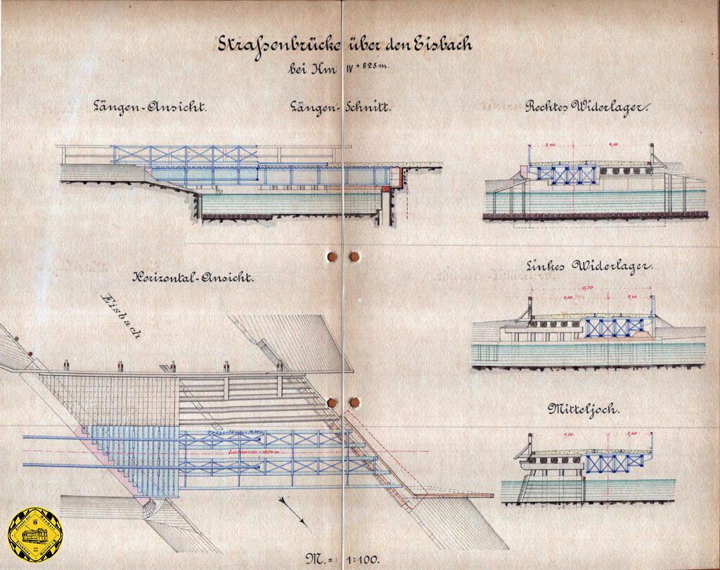 Am Baldeplatz gab es eine elegante Gleisverschwenkung in den Plänen, die verschiedene Baulinien durchschnitt, was nicht nach dem Geschmack des Magistrats war. Dafür sollte die Holzmühle & Sägewerk der Brüder Ehrengut angeschlossen werden, der hier am Dreimühlenbach sein Sägewerk etabliert hatte und mit Wasserkraft betrieb. Es folgten 2 Brücken im Verlauf der Kapuzinerstraße, auf der es weiter zum Südfriedhof ging.
