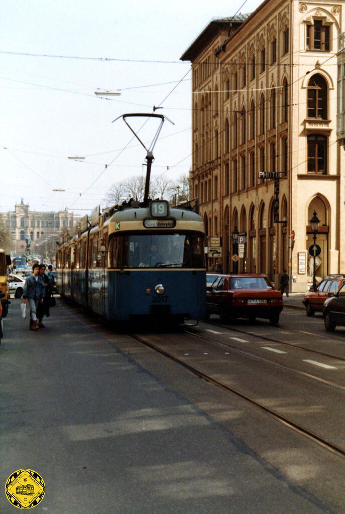 - 19 Ost: Sendlinger Tor – Karlsplatz Süd – Lenbachplatz – Maximilianstraße – Max-Weber-Platz – Ostbahnhof – Haidenauplatz – Berg-am-Laim – St.-Veit-Straße (am Sendlinger Tor Linienwechsel auf Linie 17-Ost)